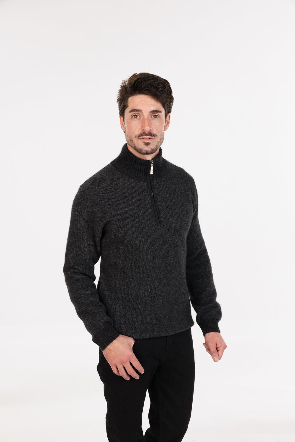 TEXTURED HALF ZIP SWEATER NB338