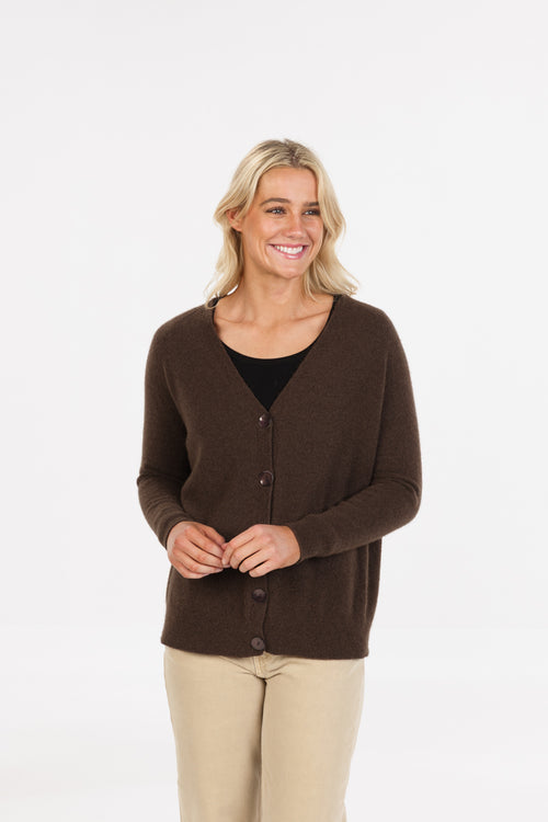 POSSUM & MERINO WOMEN'S BUTTON CARDIGAN - RELAXED FIT NB851