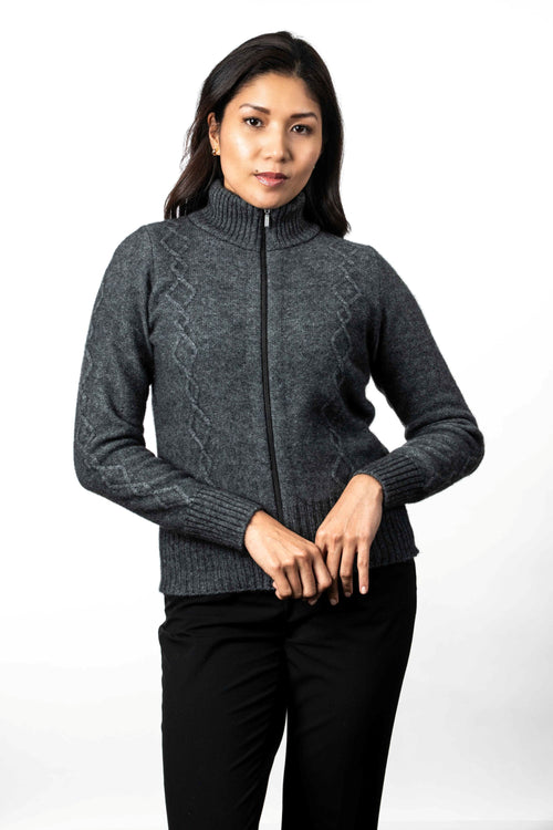 POSSUM & MERINO WOMEN’S JACKET CABLE KO567